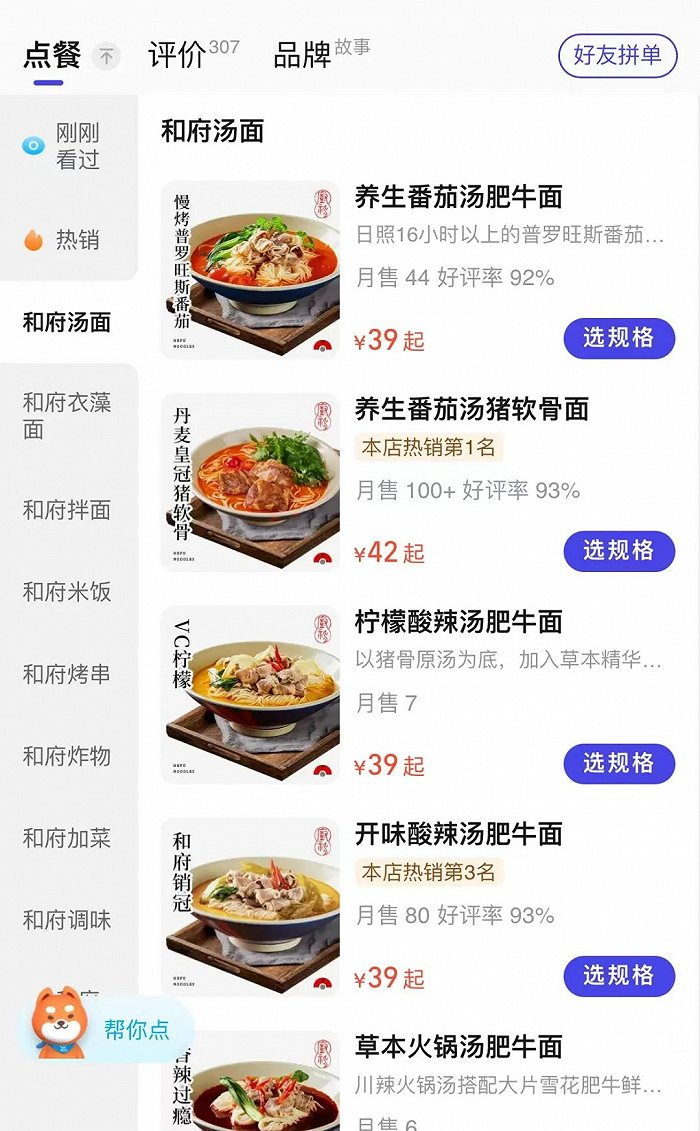 然而财经无忌观察到,在南京地区,和府捞面在美团APP上的商家页面显示人均消费33元,仍在30元以上。饿了么上价位在20到30元区间的主食仅有8款,占主食总数的25%,且这些“低价款”基本卡在29、30元。