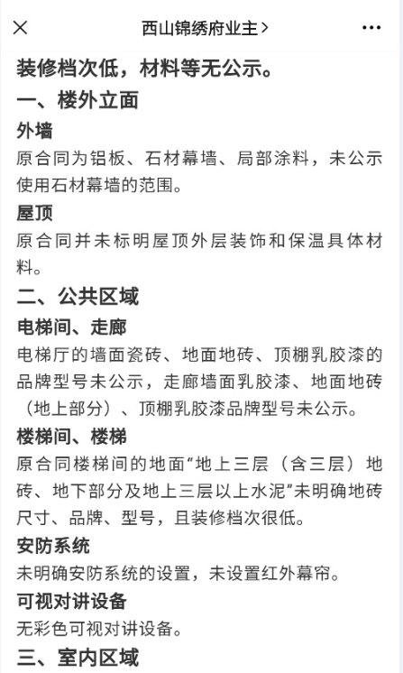 从西山锦绣府准业主内部,已传出项目窗户尺寸小,不符合国家标准;项目无预留新风系统孔位,不符合北京市地方标准;装修档次低,材料品牌无公示等问题。