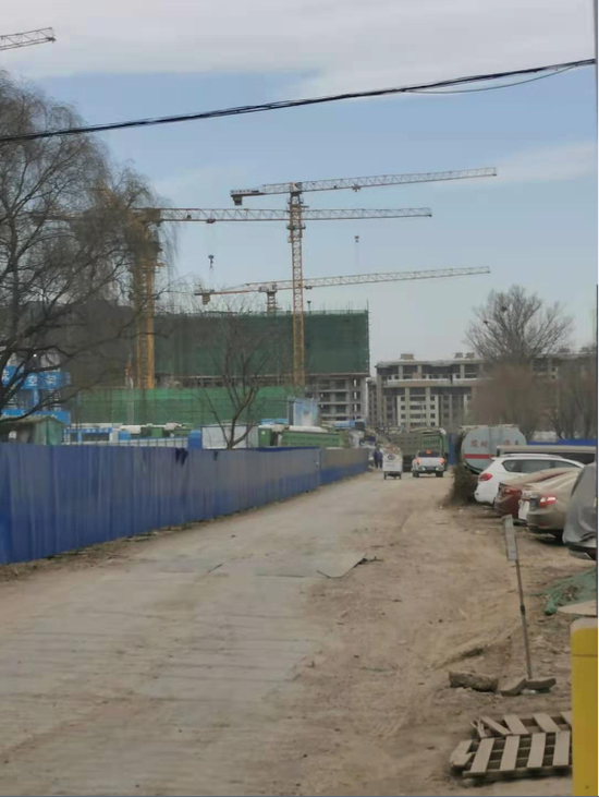 紧邻项目的碧水家园小区(远处工地为西山锦绣府)