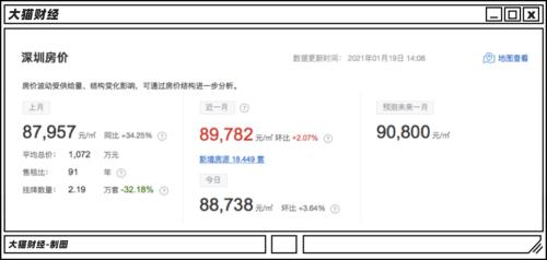 根据中国房价行情网,深圳12月的二手房均价87957元/㎡,而根据实时房价,近一个月的均价已经达到了89782元,预测1月份房价将超过9万元。