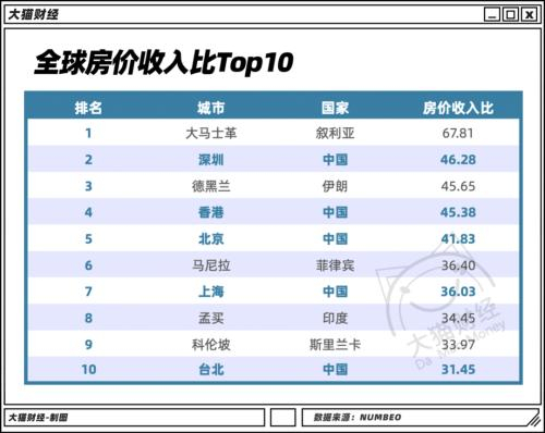 全球范围内来看,房价收入比最高的是叙利亚首都大马士革,但是叙利亚正陷入战争中,这么比的意义不大,所以排名全球第二的深圳自然就是真正意义上的全球最高了。