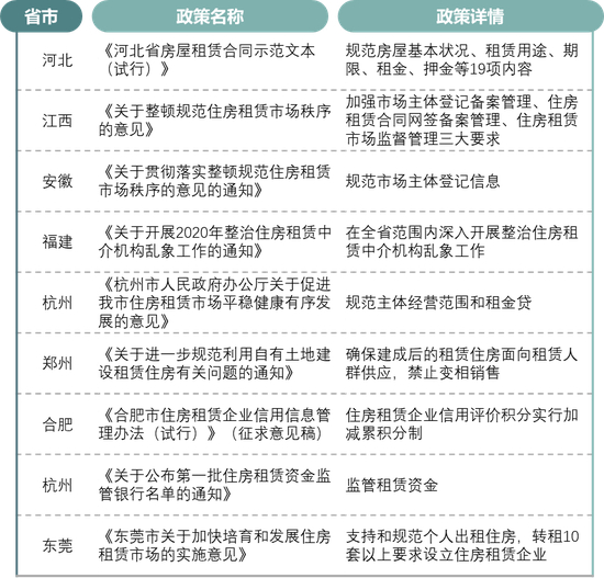 表:2020年各地规范租赁市场的相关政策(三)