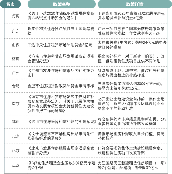 表:2020年补助租赁市场的相关政策