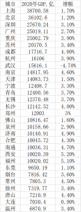 图|中国经济总量30强城市,其中23个城市GDP破万,东莞距离万亿俱乐部只有一步之遥