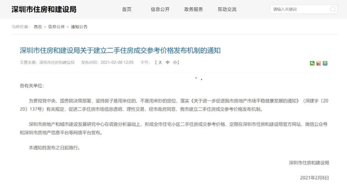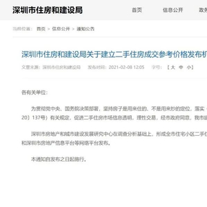 2月8日,深圳住建局一则“关于建立二手住房成交参考价格发布机制的通知”,直接给全市3595个小区的二手房设立了“成交参考价”。