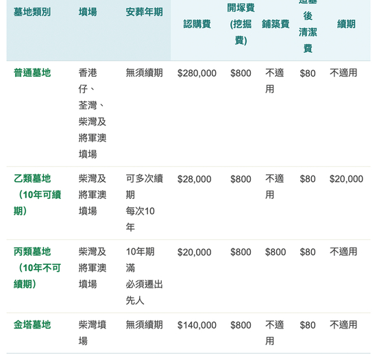根据香港拥有百年历史的坟场运营机构“华永会”的价目表,目前在运营的龛位主要分为三类。