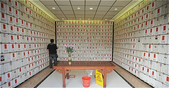 高企的价位将“入土为安”推离普通人的承受范围。更能被普通大众所接受的安葬形式,是在存放骨灰的“龛场”购买一个龛位,也就是墙上的一个骨灰格子。