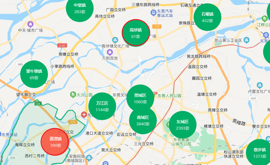 据链家平台5月14日更新数据,道滘镇目前挂牌房源仅390套,尚不及南城街道的零头,在全市范围来看,数量也居各镇街后端;高埗则更少,仅61套。