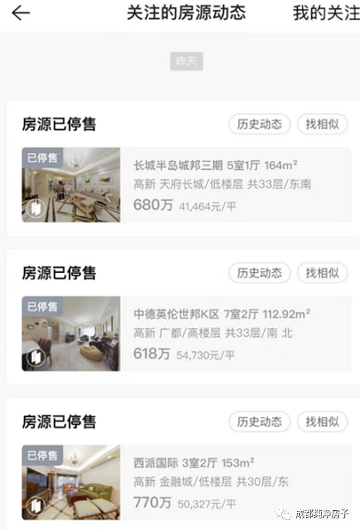 一位朋友的关注清单里,挂价4万+的房子全部隐身: