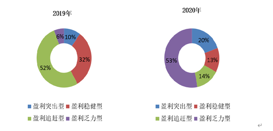 根据房地产行业特点及盈利特征,测评报告将上市房企划分为盈利突出型、盈利稳健型、盈利追赶型、盈利乏力型四种类型。