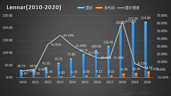 并且美国4大房企中,以住开业务为主的房企D.R. Horton,Lennar在去过10年里营收增长毫不逊色于还在城镇化中的中国。