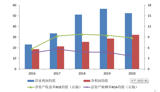 2020年,上市房企营业利润均值52.47亿元,同比下降7.15%;净利润均值32.17亿元,同比增长12.17%;净资产收益率均值8.78%,同比下降7.60%;总资产报酬率均值3.62%,同比下降23.66%。