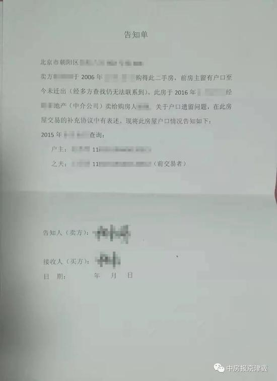 王昕也给我们看了当初签订购房合同时,卖方关于户口遗留问题的告知单,可以看出,当时“空挂户“问题给房产交易确实带来许多影响,买方和卖方都十分谨慎。