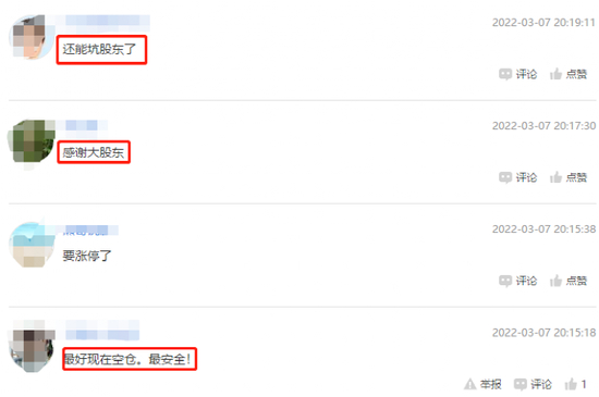 对广田控股这一“善举”,有网友表示“感谢大股东”“还能坑股东了”,也有的称“最好现在空仓,最安全”。