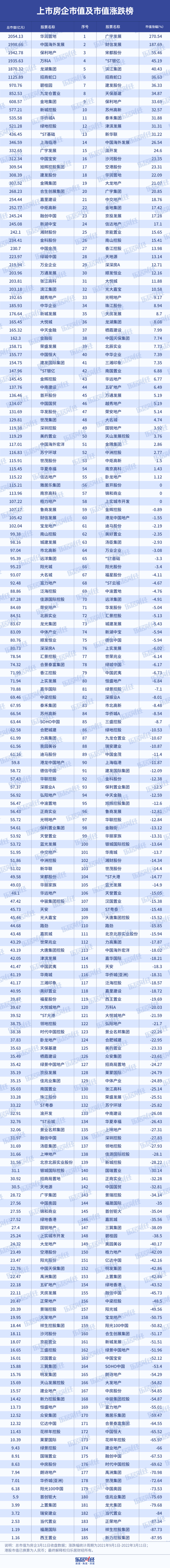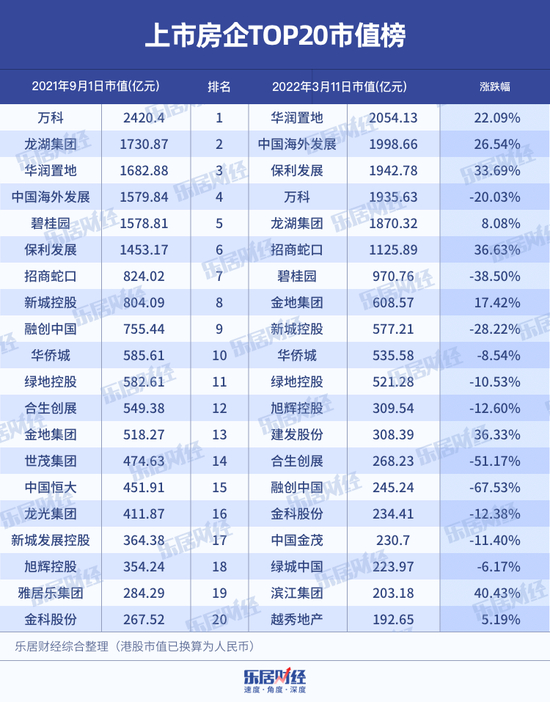 去年秋季,本应是果瓜飘香、准备收获的季节,但恒大的流动性问题酝酿许久,轰然一声雷响,引起了行业的连锁效应。此后约半年的时间里,房企的市值发生了较大的变化。