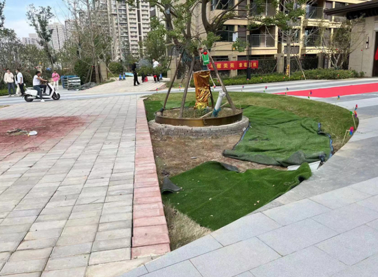 2022年9月26日,河南绿地商城置业有限公司给业主寄来交房通知书,王先生表示:“收到交房通知书的那一刻,心里石头终于落地了,但收房所见大失所望。现场赶工迹象明显,草皮坏死、地皮裸露、地砖破旧、地面脏乱差,小区的儿童游玩区竟然是“水泥面”交付,没有见过如此应付的交房。”据业主透露,项目竣工备案登记仍没有完成,不少业主选择拒绝收房。