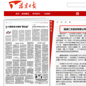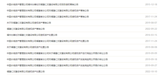 10月11日,中国长城资产管理股份有限公司福建省分公司、长城国富置业有限公司通过《福建日报》联合发布“福建仁文建设有限公司债权资产处置公告”。