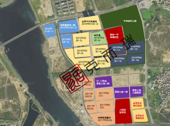 (上图蓝色、深蓝色及紫色地块为特房前期收购的金帝地块)