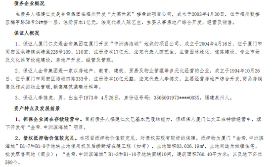 主债务人福建仁文,是金帝集团在福州开发“大儒世家”楼盘的项目公司。目前已基本无履约能力,但担保人厦门仁文正在持续经营中,旗下开发有“金帝.中洲滨海城”项目。