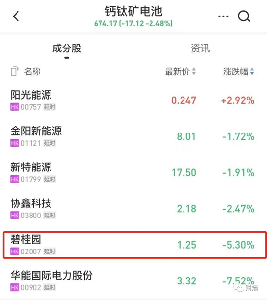 财熵留意到,在雪球APP上,碧桂园除了被标记为“房企”之外,还被贴上另一个标签:“钙钛矿电池概念股”。