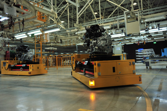 独有的发动机合装AGV正自动运行
