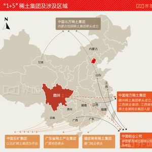 按照工信部的稀土集团组建方案,在上述几大资源大省中,内蒙、江西、广东地区的整合工作均由所在辖区内的龙头企业负责,唯独四川缺少一家独大的本地企业牵头整合。四川也因此成为几大集团激烈争夺的稀土重镇。