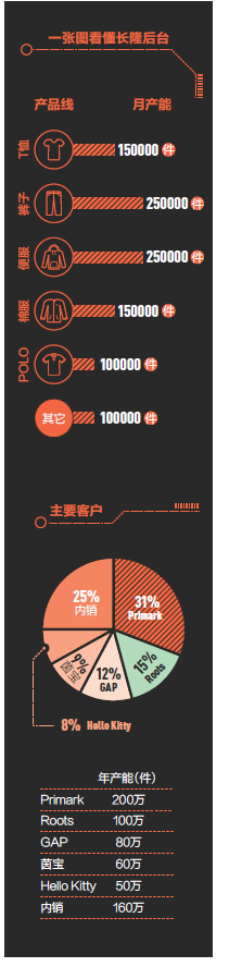 她所在的宁波长隆制衣1993年成立,老厂长抓住了服装外贸的风口,为Roots、Primark、Umbroz等国外品牌做代工,建立了一代基业。2008年的金融危机不但没有将他们送入寒冬,相反主力客户在欧洲的长隆迎来了业绩最好的一年,年营业额突破1亿美元。