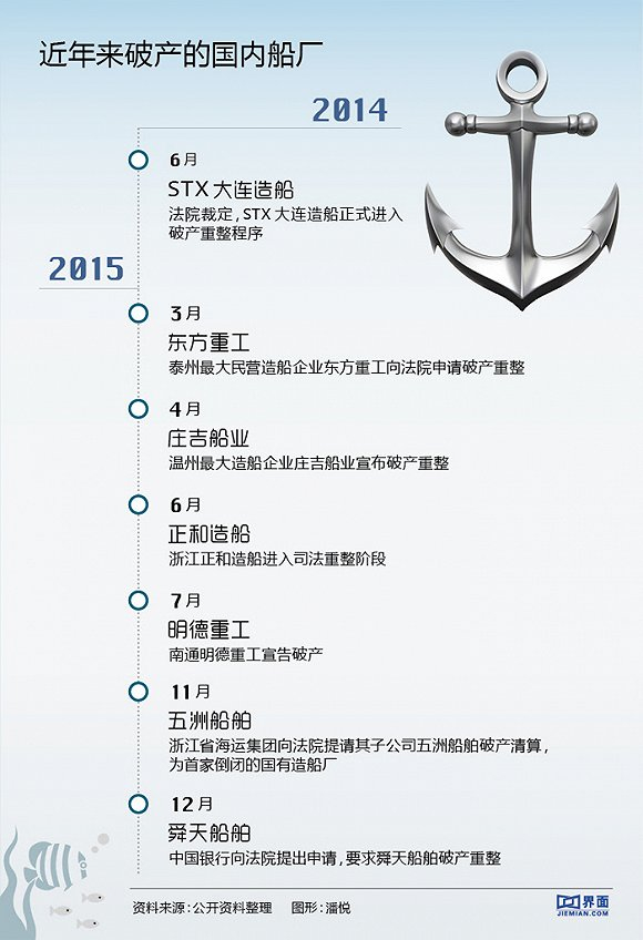 五洲船厂的情况也颇为类似,“垫资垫坏了,最后船厂的资金链断了。”该公司一位中层干部总结说。此前公司面临破产可能时,上级公司浙江海运集团曾一度给予数亿元的资金支撑。而这两年,母公司经营遇到了压力,失去依靠的船厂只能选择破产。