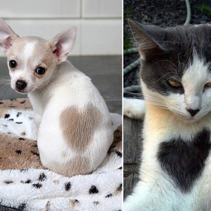 资料图片:狗和猫身上的心形皮毛。