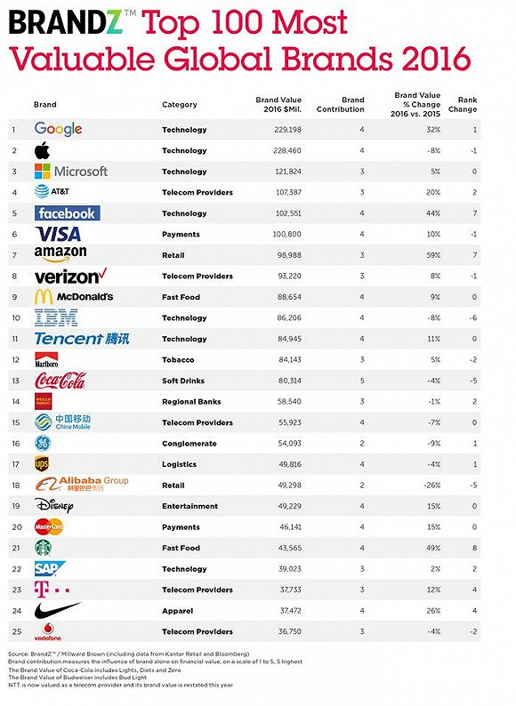 2016全球最具价值品牌百强榜公布 科技品牌风头盖过消费品牌