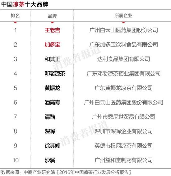 2014年7月,《消费者报道》曾向第三方权威检测机构送检了加多宝、王老吉、和其正三品牌凉茶饮料及黄振龙癍痧凉茶和王老吉广东凉茶颗粒。