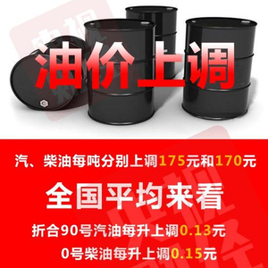 具体来看,本次国内成品油价调整,折合每升90号汽油每升上调0.13元,92号汽油每升上调0.14元, 95号每升上调0.15元,0#柴油也是每升上调0.15元。按一般家用汽车油箱50L容量估测,加满一箱95号汽油将多花7块5毛钱,加一箱90号汽油则将多花6块5。
