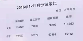 就是我们现在销售的房子和竣工的房子比例是什么关系,你们别说我让你们投资买房子啊,但是这个比例告诉你说,从住宅来说是1:2.12,什么意思啊?竣工了1,卖了2点多,你们说库存有多少,你们说该不该涨价。如果年年都是这样还有多少房子给你卖啊,傻瓜都知道这是什么关系。这个我一说什么他们老批评我,所以我也就暗示你们一下就算了。