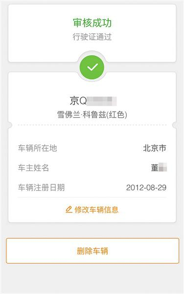 何奇表示,一般来说,若客户提供的驾照信息符合注册要求会省去很多麻烦,此时,只需根据客户提供的车型、车牌、车身颜色购买相似的车辆信息即可。