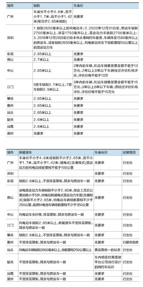 “惠州细则”规定,惠州网约车条件为本地车牌,3年以内车龄,排量不小于1 75 0毫升或1.4T。车身2.65米及以上,不要求车身标识。