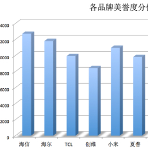 通过固定的计算公式,得出每一个品牌的综合得分。根据统计结果,各品牌的综合得分分别为:海信(12956分)、海尔(10788分)、TCL(8346分)、创维(7318分)、小米(7262分)、夏普(7114分)、康佳(6332分)、长虹(3890分)、三星(3818分)、乐视(2906分)。