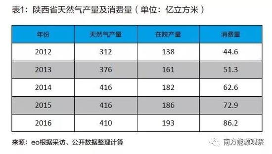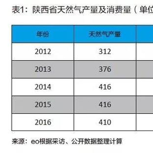 陕甘宁地区是中国天然气产量第一大区域,长庆石油年产气量近400亿立方米,其中一半来自陕西。长庆油田天然气产量近年增产乏力,陕西省的天然气消费增长速度也有所放缓。
