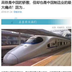 最近,一篇名为《高铁是中国的骄傲,但却是中国制造业的最大痛点……》(以下简称为“《痛点》”)的文章在网上十分流行,而这篇文章已经不是第一次被转发,甚至都引起了两院院士沈志云的关注。
