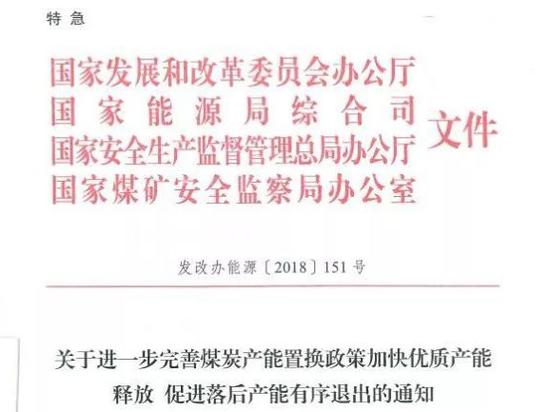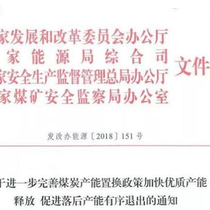 国家发改委、国家能源局、国家安监局、国家煤监局联合发布通知,针对各地推动落后产能退出力度不断加大、经济回升对能源的需求显著增加的情况,需要进一步完善产能置换政策、加快优质产能释放,通过优质产能有序增加,推动落后产能尽早退出,促进煤炭产业结构调整和新旧发展动能转换。