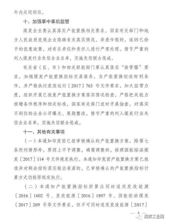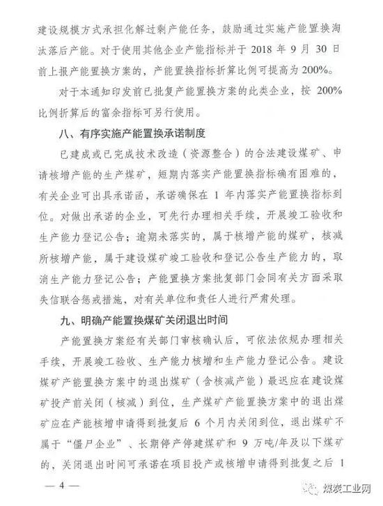 通知要求,明确产能置换煤矿关闭退出的时间,加强事中事后监管。