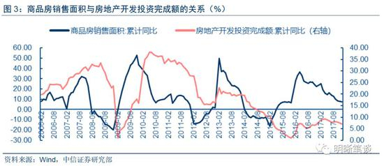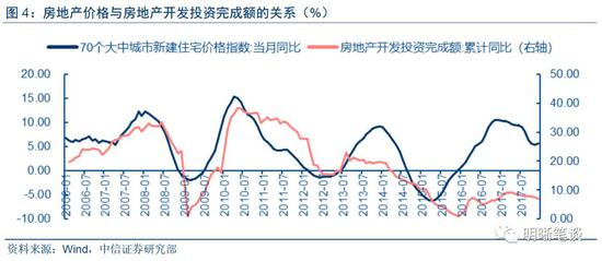 房地产销售与投资的关系不甚明确,或与楼市调控更直接相关。理论上,地产商的销售情况往往预示着其再投资能力,因此房地产销售与投资应当具有一致性,并且投资增长滞后于销售。2015年以前的情况确如理论所述,销售与投资之间的关系比较明确,滞后期大多在3~7个月。2015年起这一规律发生变化,2015年和2016年上半年销售增速上升很快,但对应滞后期的投资增速并没有出现明显提高。我们认为出现这种情况可能有两方面原因,其一,2016年以来楼市调控力度增加,经济工作会议提出了去库存箭头直指房地产,政策收紧预期限制了房地产商的再投资,其二,2016年初房价经历了一轮上涨后一二线城市房价出现停滞甚至缓慢下跌,价格回落的担心也降低了房地产商再投资冲动。总起来讲,房地产销售情况和盈利水平仍然会影响投资水平,但二者传导关系受政策和预期影响较大,传导并不是很顺畅。2017年我国房地产行业龙头取得了不错的销售成绩,但这可能并不意味着2018年的投资水平能够明显受到销售的拉动。