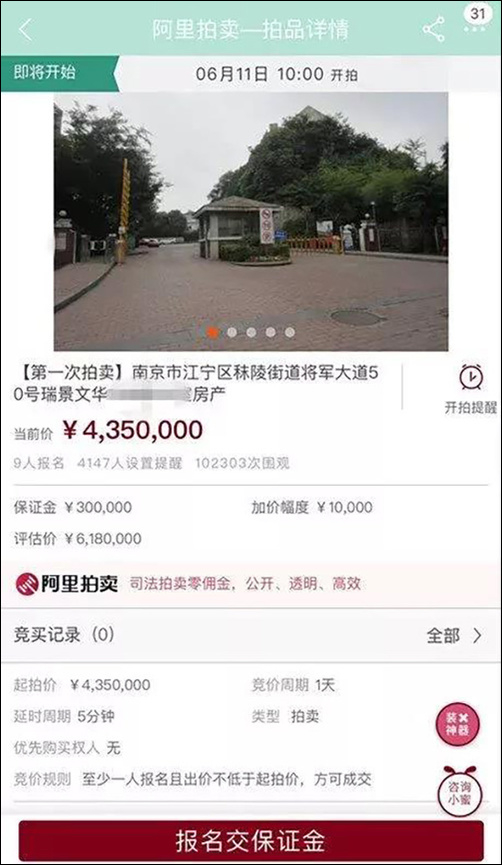 目前,已经有9个人像大妈一样预付了30万的定金,参与竞拍这套别墅。