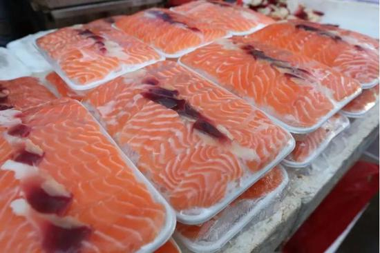 这个行业坚决不允许产生商业性欺诈。我们要干的事是要判定虹鳟鱼可不可以叫三文鱼,这样叫正确不正确。今天,红鳟鱼可能借了点大西洋鲑的光,但是用不了几年,就可能是大西洋鲑借虹鳟鱼的光了。因为虹鳟鱼再过几年价格肯定和国外一样,肉质美,颜色鲜艳,各种指标都比大西洋鲑高。