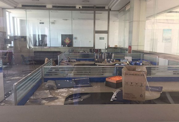 界面新闻记者在厂区门口驻足许久,只见到了一位前来进行债权申报登记的债权人出入。永泰集团主楼内,已无人走动。主楼旁边的销售中心楼,只有一间贴着“债权申报室”的办公室开着门。