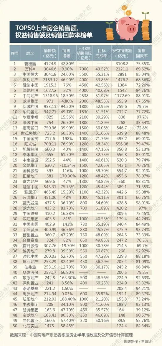 独家财报丨2018上半年TOP50房企销售权益回款大分析 它揭示了一个新格局