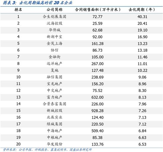 但土地储备是把“双刃剑”,并非多多益善。一方面充足的土地储备,有利于满足房企未来项目开发,实现现金回流。但另一方面,过多的土地储备,会造成一定的资金占用。如果房企的土地储备增值低于资金成本,则意味着现有土地储备“亏损”。因此,需注意去化周期指标,对于去化周期偏高房企如合生创展集团、泛海控股等应关注其今后销售状况。