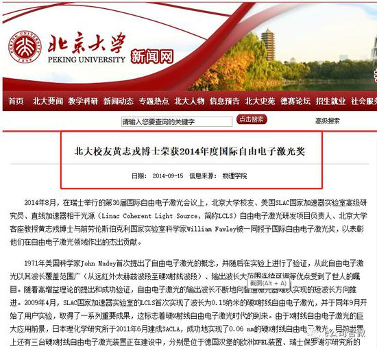 黄志戎博士荣获2014年度国际自由电子激光奖。