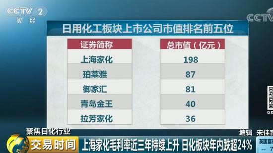 上海家化毛利率近三年持续上升 日化板块年内跌超24%