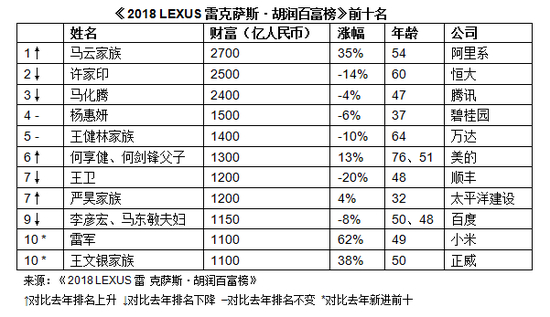 从这份对比图可以看到,过去三个时间节点中,许荣茂家族均在前十名单中。不过,2014年,许荣茂跌出了胡润财富榜前十行列,今年,其排在第20位。