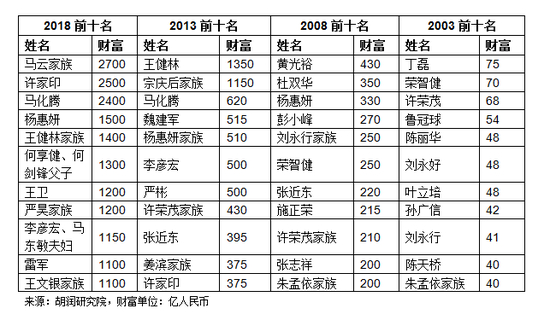 10月10日,《2018年胡润百富榜》发布,在这份新的榜单中,马云家族资产暴涨700亿元,以2700亿元财富再次问鼎中国首富。而前首富许家印的情况与之相反,这一年,其财富缩水400亿元,以2500亿元位列次席,紧随其后的是拥有2400亿元财富的马化腾。